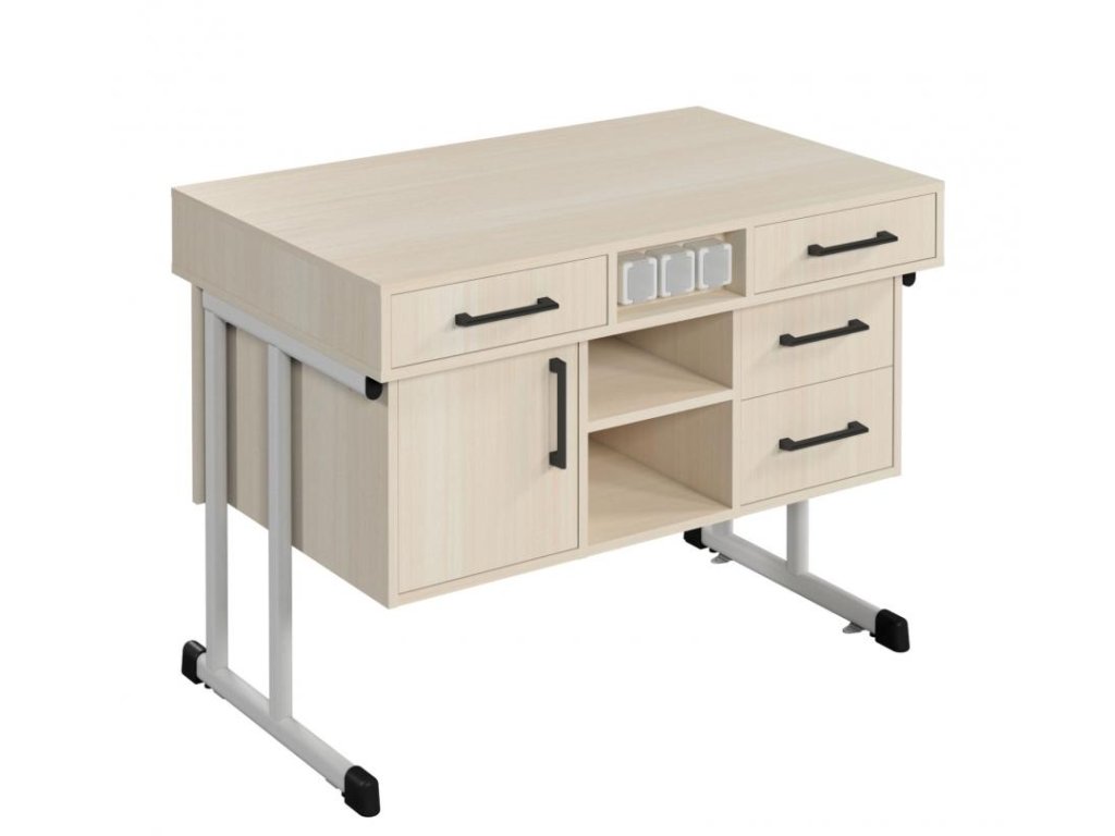 Demonstrační stůl do speciálních učeben, se el. zásuvkami, povrch HPL, ideální do učeben fyziky a chemie